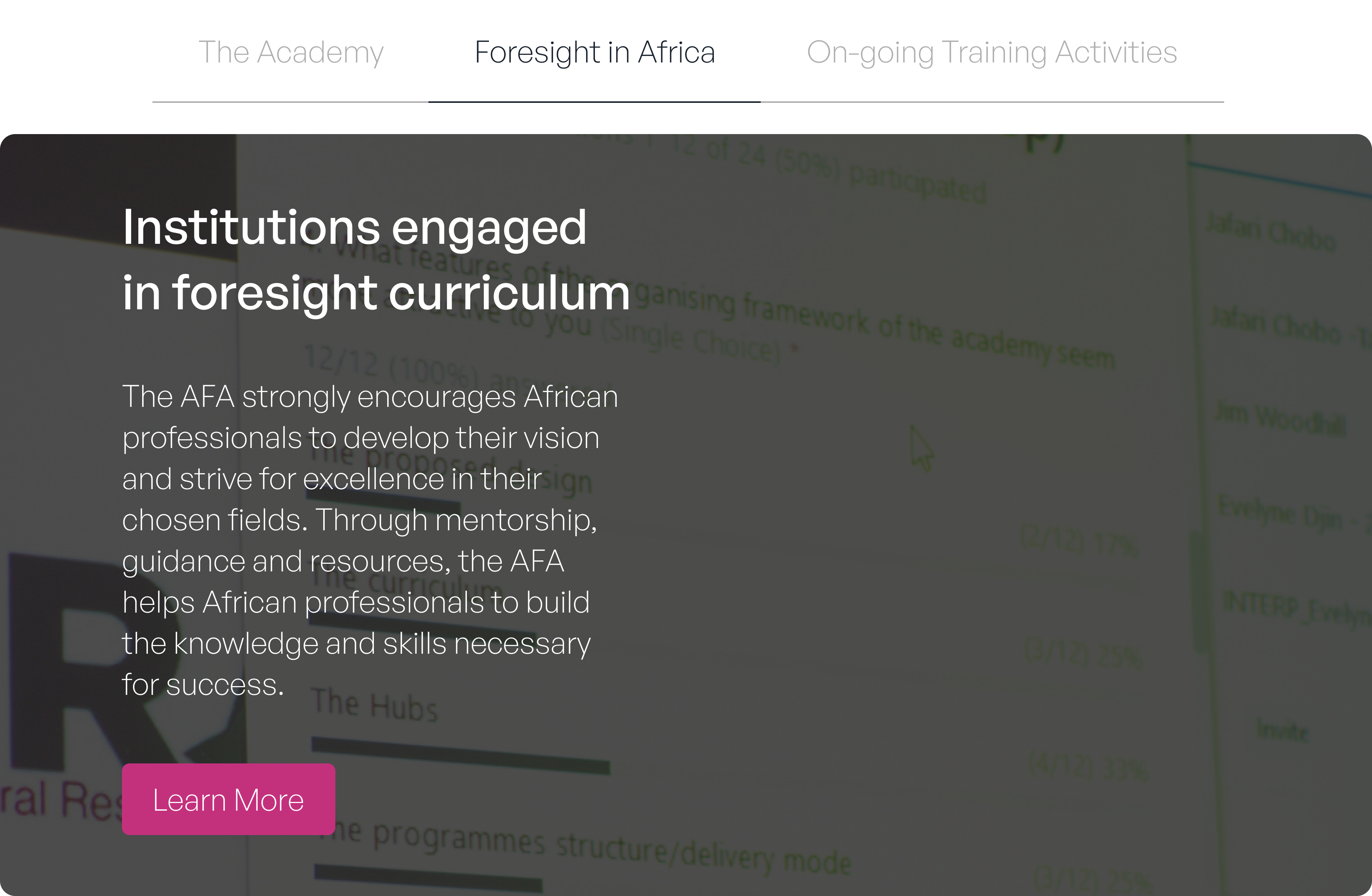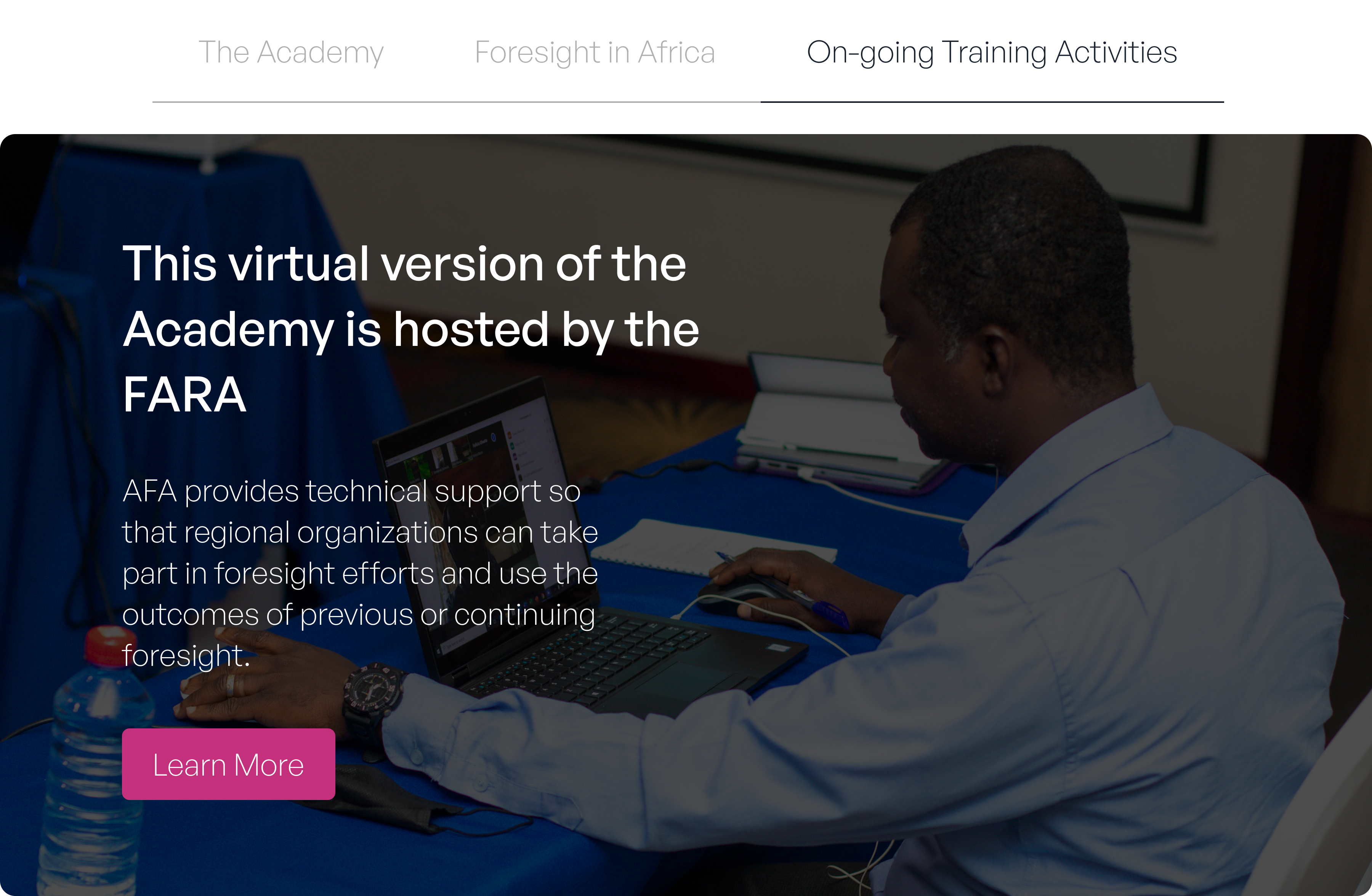 AFA offers technical assistance to enable regional organizations to participate in foresight initiatives and apply results from past/ongoing foresight.